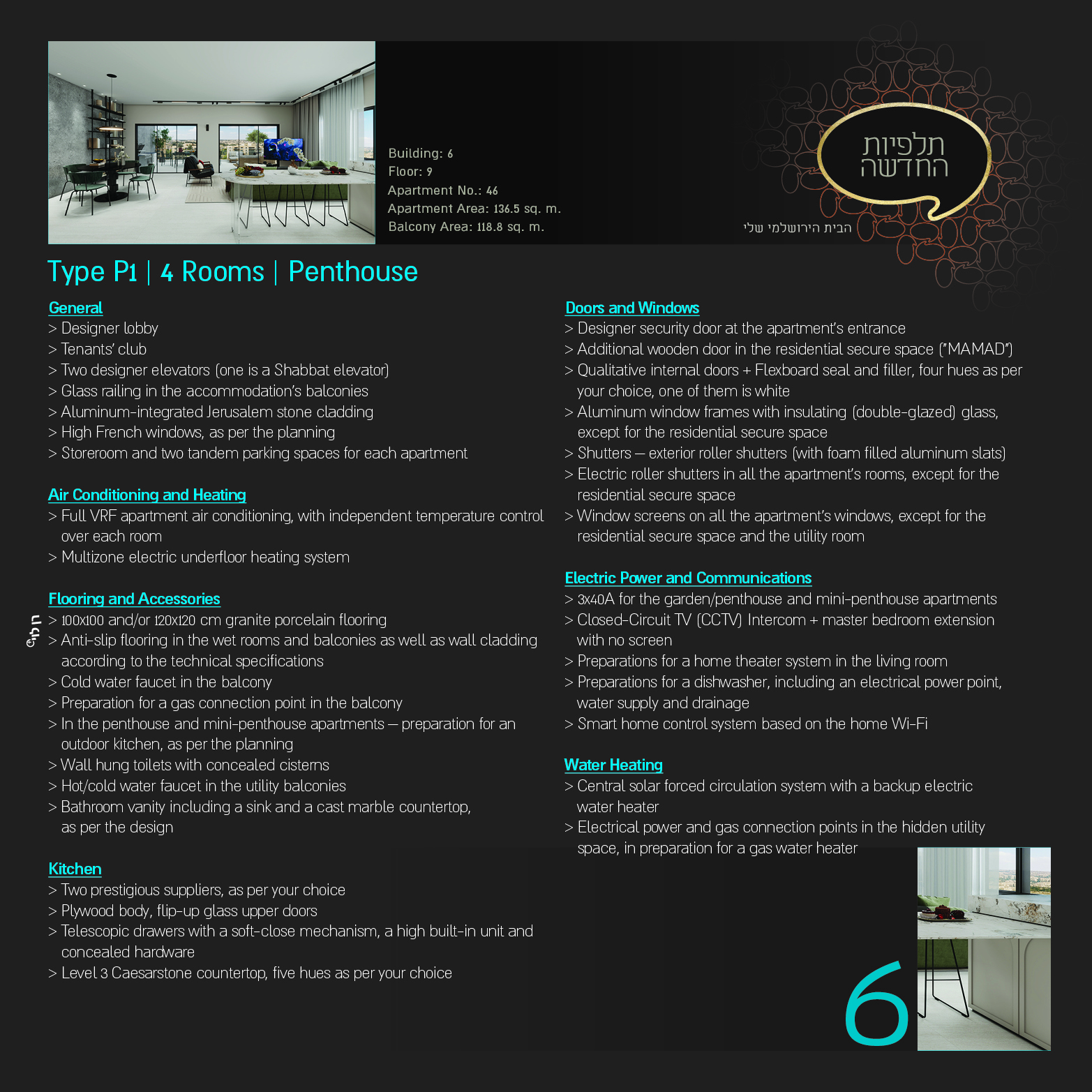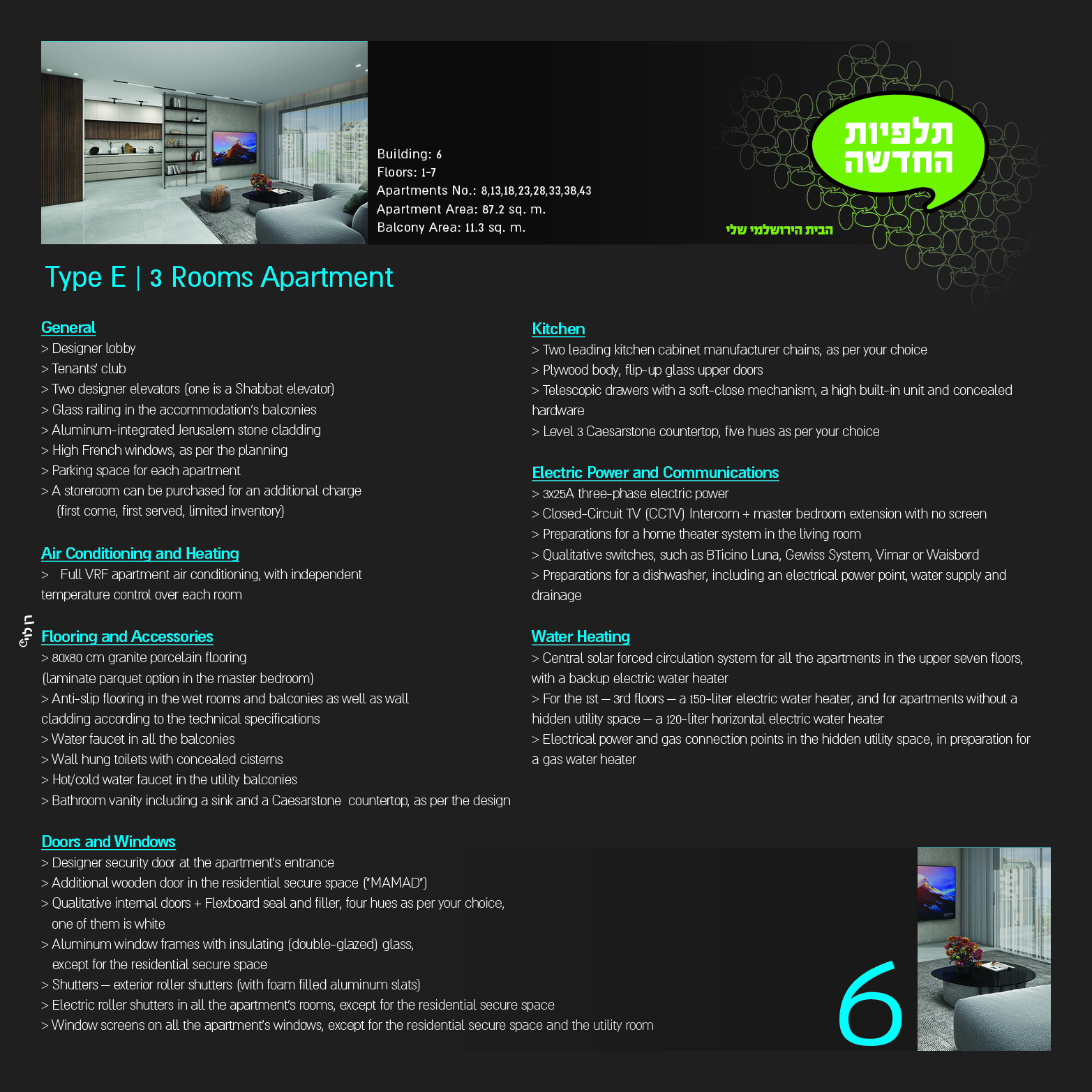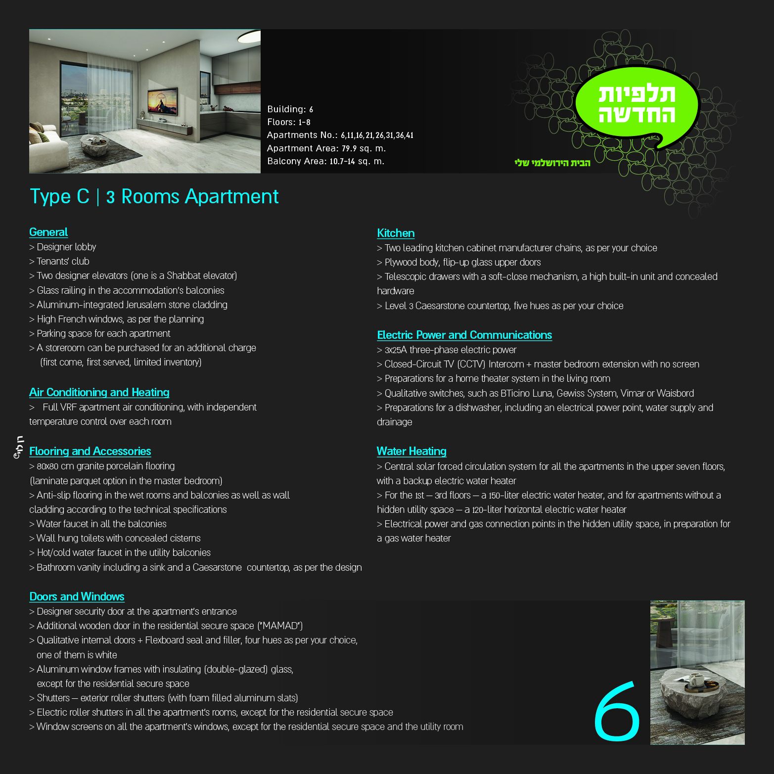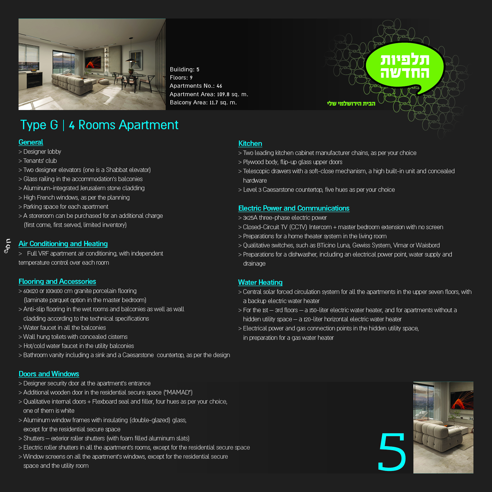We are pleased to invite you to join the Stage 2 of the New Talpiot project, which was designed by world-class architectural firm Mann Shinar, and join the high-quality and cohesive community of residents who live in the project’s first stage. The project residents enjoy a luxurious lobby designed by the world-class architect Nir Portal, covered parking, and storerooms. A green park and a prestigious street mall will be established in the heart of the project. The project has eight spacious buildings with 2-5 room apartments, mini penthouses, penthouses. The first buildings in the first stage are already occupied and two buildings of the second stage are now being marketed.