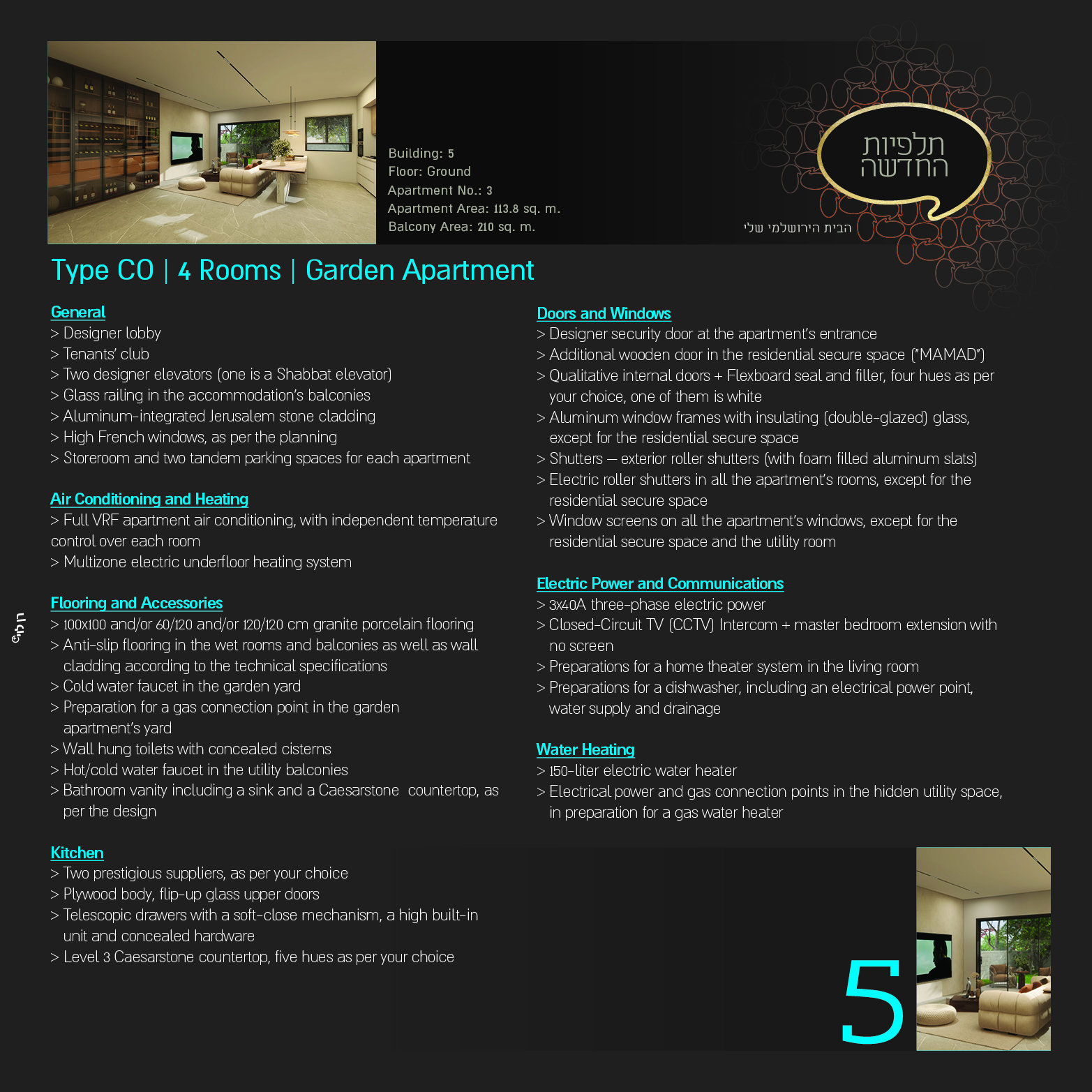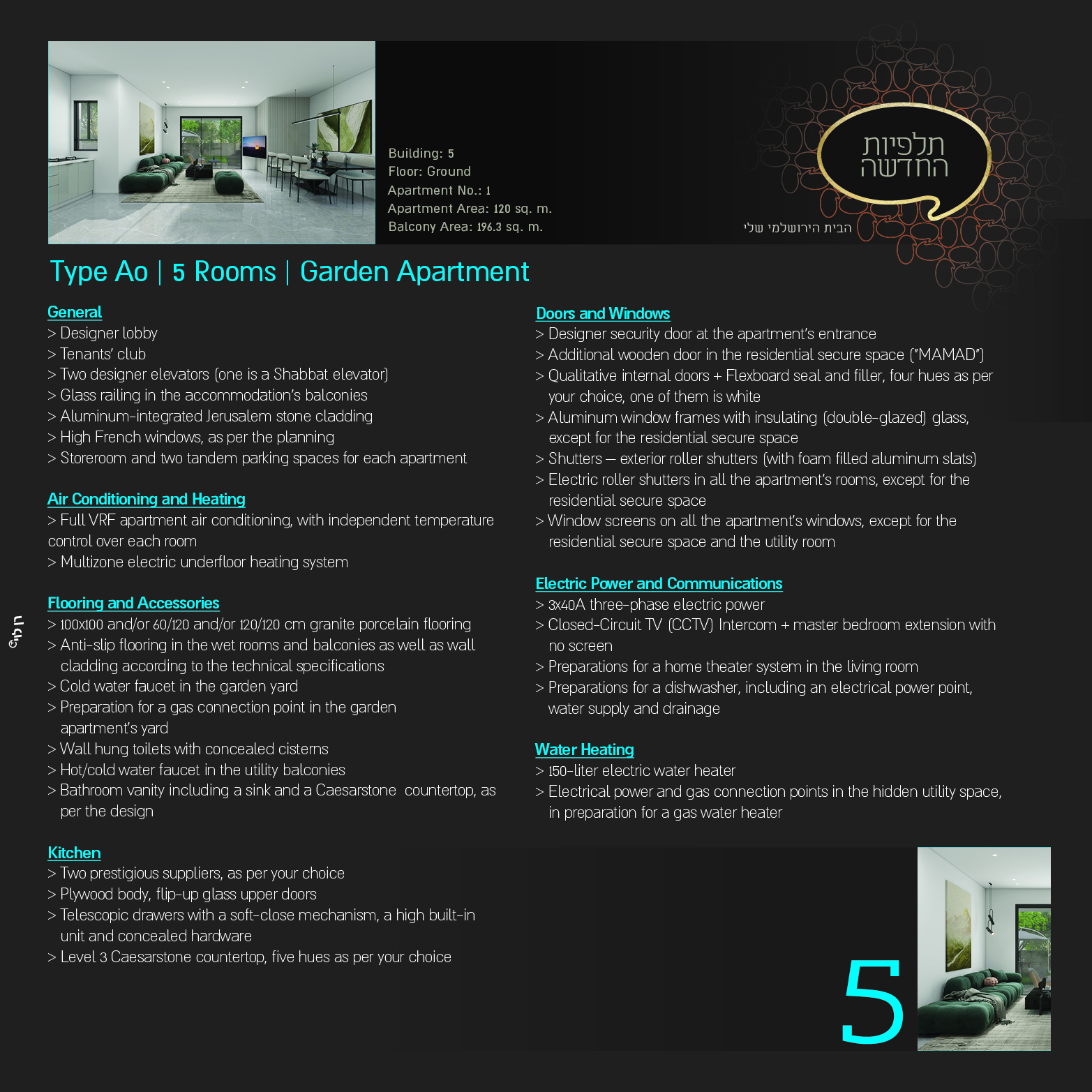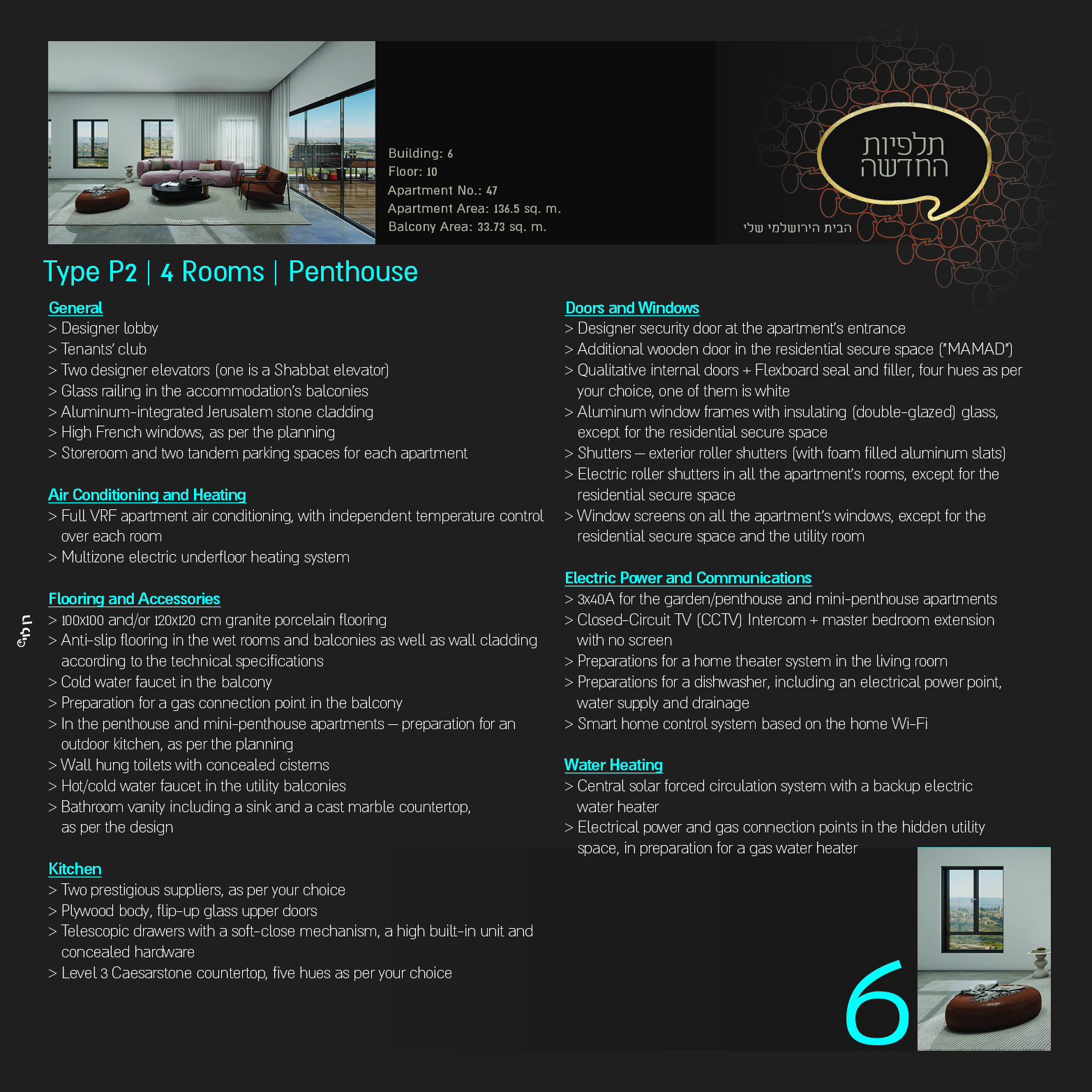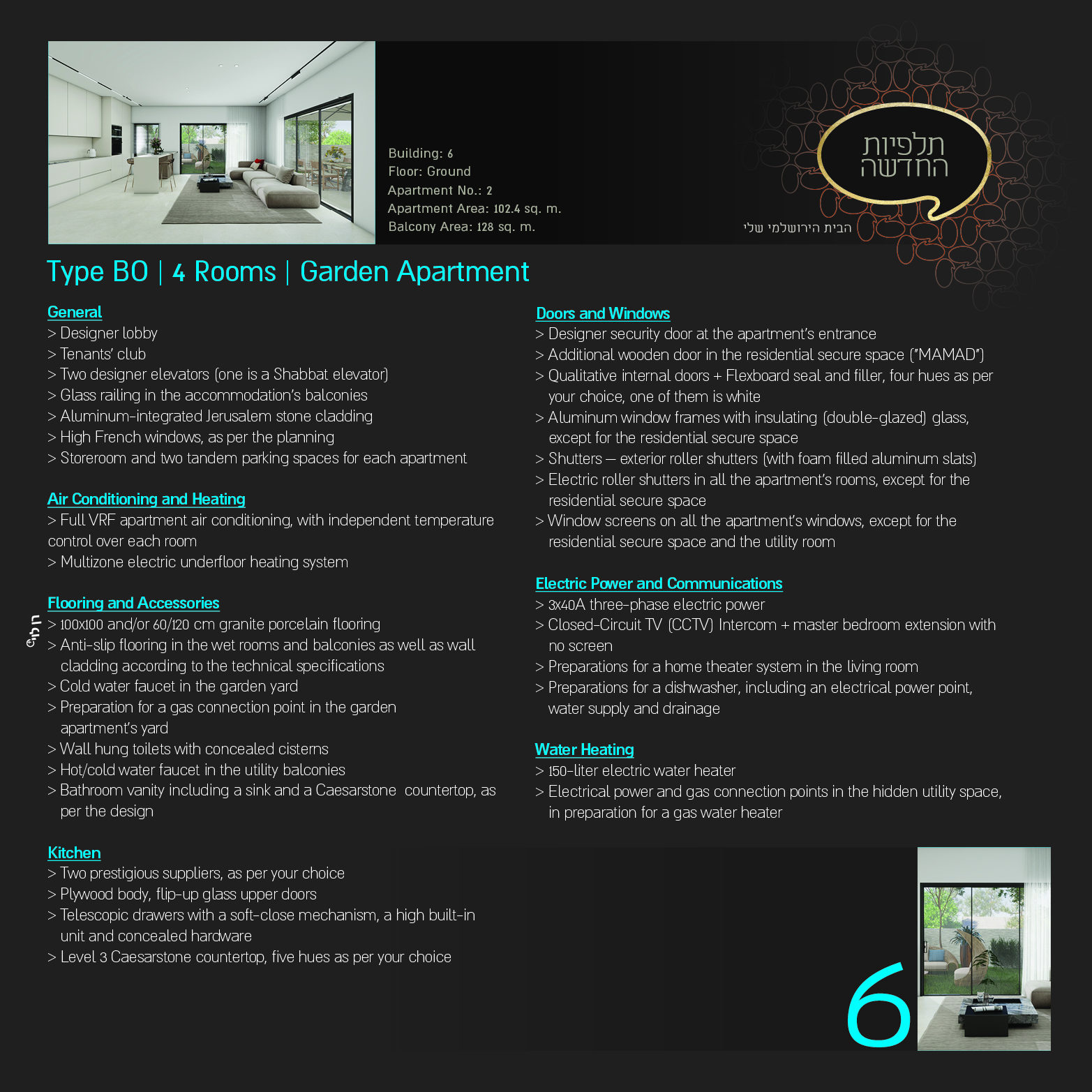We are pleased to invite you to join the Stage 2 of the New Talpiot project, which was designed by world-class architectural firm Mann Shinar, and join the high-quality and cohesive community of residents who live in the project’s first stage. The project residents enjoy a luxurious lobby designed by the world-class architect Nir Portal, covered parking, and storerooms. A green park and a prestigious street mall will be established in the heart of the project. The project has eight spacious buildings with 2-5 room apartments, mini penthouses, penthouses. The first buildings in the first stage are already occupied and two buildings of the second stage are now being marketed.