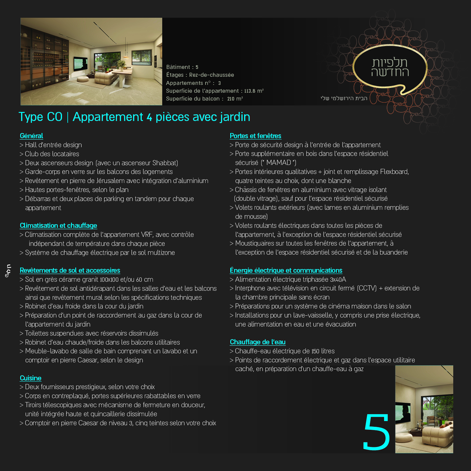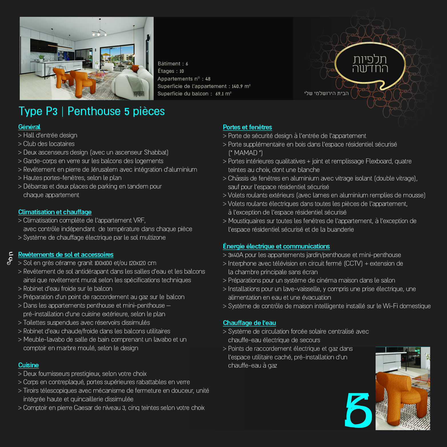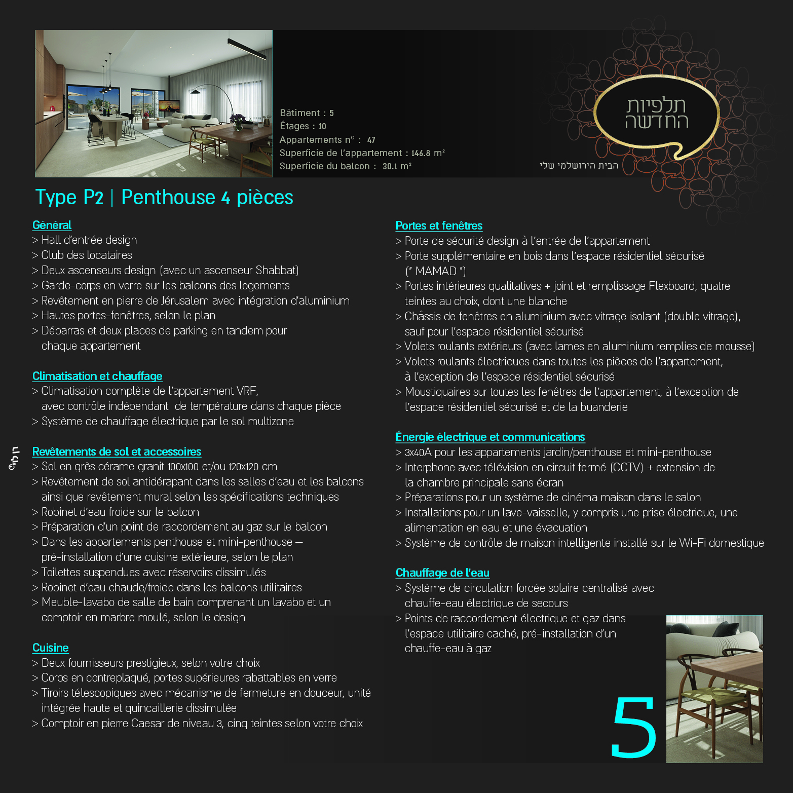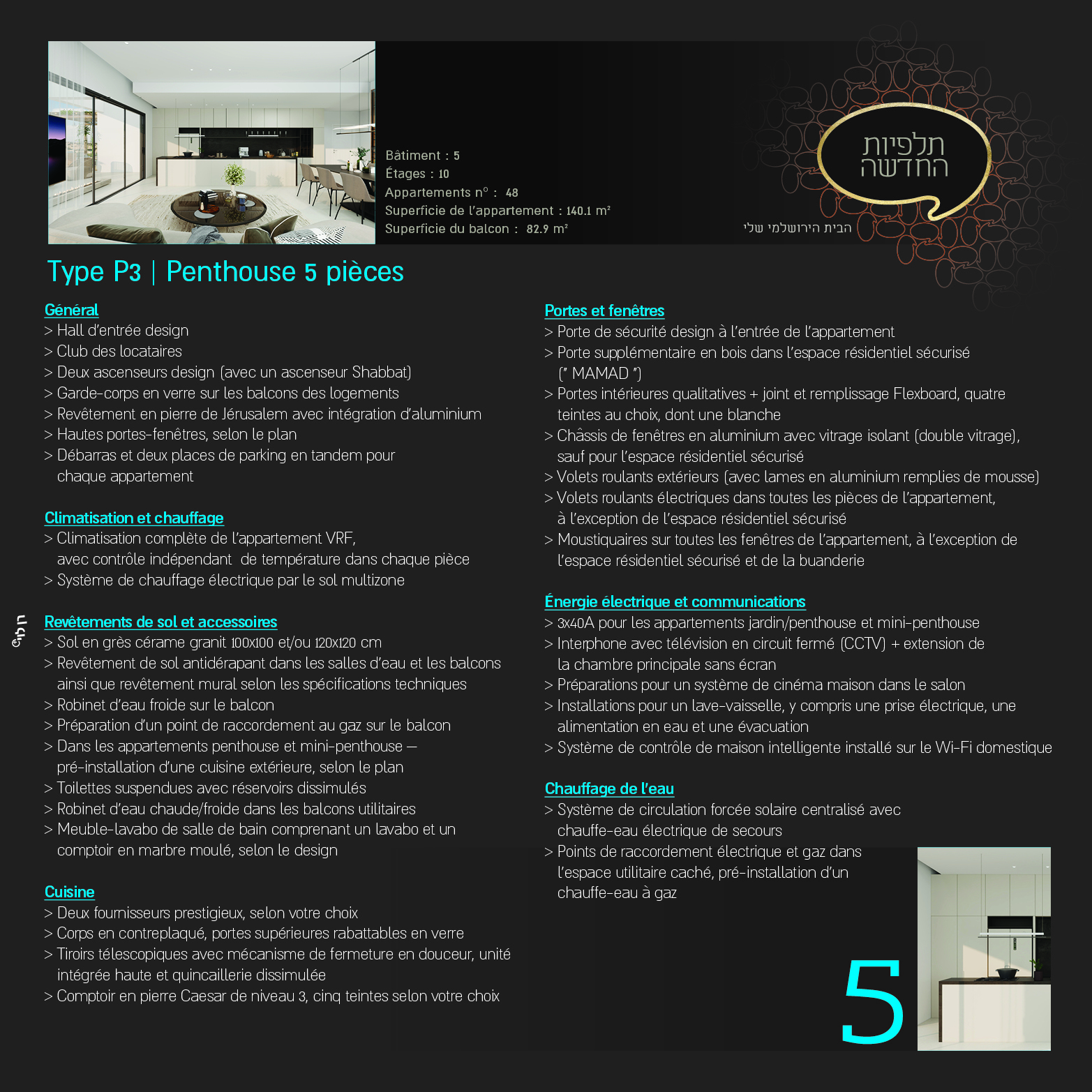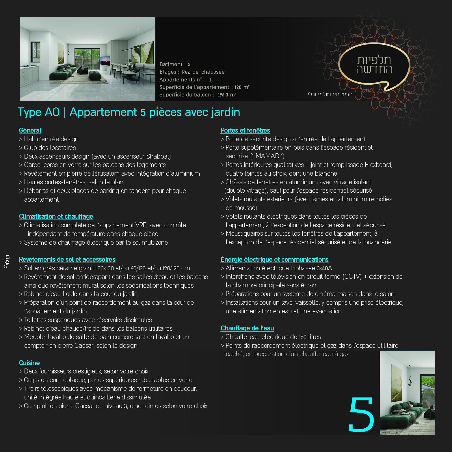 Nous sommes ravis de vous inviter à adhérer au projet « New Talpiot » 2ème étape, conçu par le cabinet international d’architectes Mann Shin’ar, et à rejoindre la communauté de qualité qui s’est formée à la première étape. Les locataires profiteront d’un lobby de grand luxe conçu par l’architecte de renommée internationale, Nir Portal, d’une place dans le parking souterrain et d’un entrepôt. Au cœur du projet, il y aura un parc luxuriant avec jeux pour enfants, avec le prestigieux STREET MALL à proximité. Le projet comptera 8 immeubles de grand luxe avec des appartements de 2 à 5 pièces, des appartements-jardin, des mini-penthouses et des penthouses. Les 4 immeubles de la première étape ont déjà été emménagés et les 2 immeubles de la 2ème étape sont en cours de commercialisation.